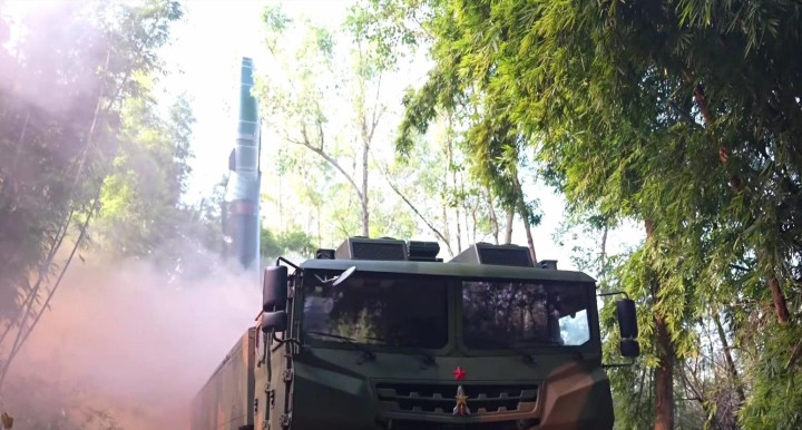 同一天,火箭军机动中的东风-17高超音速弹道导弹也出现在镜头里。
